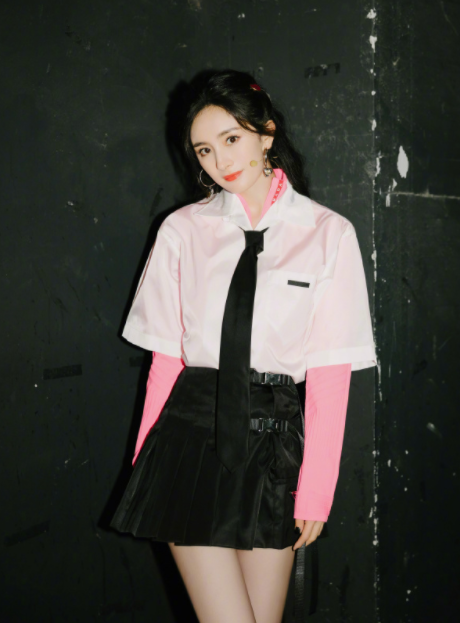 杨幂的黑白粉穿搭,这气质真的超可以的!